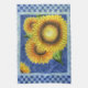 Ljusa, glada solblommor dekorerar kökshandduken. Designen kommer från en originalmålning.