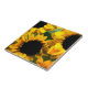 Unik design av solrosartistisk keramik skapat med en botanisk bild av tre solrosblommor tillsammans som presenteras på ett abstrakt. Skapat som dekorativt tillbehör till ditt köks- eller matområde.