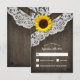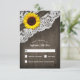 Solros Barn Wood och Snöre Bröllop OSA Cards - har en lada-bakgrund med tryckt alencon snöre och en blommigt solrosdesign som passar dig för land, vintage eller rusningstemat.