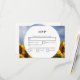 Den här utformningen har solblommor och en bakgrund i blå himmel. Den enkla vita cirkeln ramar med sin elegant-typografi placeras ovanpå fotot av rustik solros fält för att skapa en bedövande design. Gulten och blåtonerna i himlar och solblommor skapar en naturlig land-trädgård. Utformning av acceptkort för elegant bröllop med modernt inslag. Det finns också möjlighet att matcha bröllopsinbjudningar och andra artiklar i kontorsartiklar.