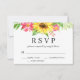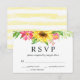 Solroskort med Bröllop OSA nummer som tillval. Kortet är dekorerat med en vacker solrosbukett högst upp på kortet. Kortets baksida dekoreras med rand med mjuk gult.