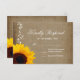 Rustic Land Vintage Solroskort med en tryckt, antik brun bakgrund med en nyans av brännpunktsmönster, vita vinstockar och en vacker gult och brun solros i hörnet. Det här är perfekt för ett rustiskt landsbyggsbröllop: solroskort, gamla röta, gamla, vita, bröllop OSA från rustiska land, från rustiska vintagar, viner, solblommor från blommigt, blomkuddar, svarskort, svarskort