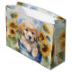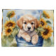 Den här designen har en söt och snygg marionett i en hacka med solblommor i vattenfärg.