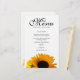 Ett roligt men elegant blommigt bröllop-menykort, med solrosfoto. Det finns också en motsvarande handsanpassare. Ett underbart val för höst-, sommar- eller rustik party, bröllop, möhippa- och babyduschar eller till och med företag som restauranger. Finns i en återvunnen papper för ett miljövänligt alternativ.