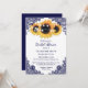 Anpassningsbar Solrossolrosblomma inbjudningskort för möhippa med solrosblommor, ljus och blommigt snöre. Matchningsartiklar som är tillgängliga för att komplettera dessa eleganter inbjudningskort för möhippa för marin marin chic.