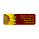 Solros på mörk maronrött, returetiketter. Anpassningsbar, skarp gult matchar den stora solrossen vid kant. Lägg till upp till 4 linjer text i stil, som är lätt att läsa i det utskrivna teckensnittet, på den här lilla storleka etiketten.