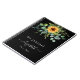 En svart bakgrund. Dekorerad med solblommor, eukalyptus greenery. Lägg till namn, text. Namn är skrivet med ett modernt handskript i stil med dekorationer. Om du bara vill behålla utslagen tar du bort exemplet namn lämnar du blankstegen eller symbolerna framför och efter namn.