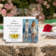 din bröllop-dejt med vår vackra bröllopsinbjudan med solblommor, blå vilda blommor och ett foto. Utformningen innehåller solblommor med vattenfärg och blåa vilda blommor för söt och elegant, perfekt för att meddela bröllop. Snyggt typsnitt ser till att inbjudan ser förfinad ut och ser till att informationen om bröllop är lätt att läsa. Den här inbjudan kombinerar solblommor, vilda blommor och elegant på ett vackert och minnesvärt sätt till inbjudan för dina gäster.
