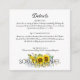 Förbättra dina bröllopsinbjudningar med det här fantastiska solrosblått jokertecken bröllop. Utformningen visar delikata och komplicerade blommigtar som är placerade på en skarp, ren vit bakgrund. Kortet är ett idealiskt sätt att lägga till en skräddarsydd och personlig beröring till din bröllopsinbjudan. Dess vackra estetik kompletterar en rad bröllop-teman och stilar. Visa dina gäster viktiga detaljer eller hjärtliga meddelanden med hjälp av detta tankeväckande designade kort. Solrosblåblomman inslag ger en aning naturskönhet till din speciella dag, medan den vita bakgrunden garanterar läsbarhet och elegans. Gör dina inbjudningar ännu mer minnesvärda genom att ta med det här laddningskortet.