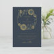 Den här marinblå bröllopsinbjudan blandar tidlös elegans med modern bekvämlighet. Ett gyllene solrosvans ramar parets namn i en raffinerad, serif typeface, medan delikata manusaccenter tillför värme. Riken kontrasterar mellan gulten för blått och mjukt solrossolskum ge, vilket är en rustik men polerad känsla. Baksidan har ett diskret QR-kodområde - perfekt för att länka till bröllop webbplats, OSA, register eller reseinformation. Observera att guld färg endast är tryckt, inte folie eller metall.