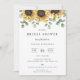 Rustik vattenfärgsolros och eukalyptus blommigt arrangemang, inbjudningskort för möhippan. Kortet har modern typografisk design med stil-mall och marin blå färg-baksida.