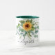Dekorerad med en vattenfärgad solros och eukalyptus greenery. En genomskinlig bakgrund. Anpassa och lägg till ett namn. Namn är skrivet med ett modernt, handskrivet stilskript med dekorationer. Om du bara vill behålla utslagen tar du bort exemplet namn lämnar du blankstegen eller symbolerna framför och efter namn.