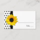 Texten på denna chic och i klasserna återger solrosor av gult av svart och vit polka bröllop eller speciella händelsekort (eskort, sätskort) är fullt anpassade, eller bara lämnar den som den är. Kortets storlek är 3,5 x 2,5 tum och allt som krävs är vissa kortinnehavare. Denna skylt över solrosblommor och polka dots blommigt skulle fungera bra vid en rad särskilda tillfällen. Verkligen, vad du användor det för är upp till dig. OBS! Detta är en platt tryckt design utan upphöjda eller 3D-märkta detaljer. Detta är en del av en temainställd uppsättning för stationära datorer.