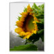 Solros börjar öppna på en mistmorgon i vår New Hampshire-trädgård.