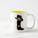 Solrosor, Cowgirl Svart Hatt & Boot Två-Tons Kaffe Mugg. Cowgirl-text i mitten kan anpassas.