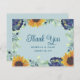Denna bröllopskortdesign med tack innehåller fina akvarellfärgade blå blommor, solrosor och eukalyptusgrenar på en dammig blå bakgrund. Variationer av denna design, olika papperstyper (inklusive budgetalternativ) samt kompletterande produkter finns tillgängliga i vår butik, zazzle.com/store/doodlelulu. Kontakta oss om du vill att denna design ska appliceras på en specifik produkt för att skapa din egen unika matchande artikel! Tack så mycket för att du tittade på en DoodleLulu by 2 june bugs-design!
