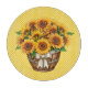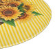 En Vacker Rund Glas Skärbräda För Det Landliga Temat Designad Med Gula Ränder Och En Korg Med Solrosor