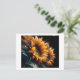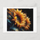 Ljusande solrosor visar virvlande, dynamiska penseldrag i orange och gult, som kontrasterar mot djupblå och svarta nyanser. Kompositionen förmedlar en känsla av rörelse och energi, med en signatur i det övre hörnet.