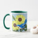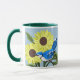 Solrosor och blåskrika mugg