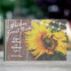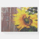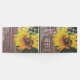 Denna rustika bröllopsgästbok för landsbygden har en vacker gul solros med gröna blad och charmerande slingljus. De är satta mot en gammal falsk trädgårdsbakgrund. ^