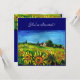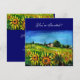 Tuscanlandscape, färgrik, livfull, uttrycksfull skönhet av italiensk sommarflora och fält i ljust gult, orange, grönt, brunt, blått, vackra blommor, cypress- och olivträd, gammalt rustikt bondgårdshus under blå himmel. Akrylmålning på duk. Denna coola och konstnärliga inbjudan är också vacker för trädgårdsfest, brud shower, semesterfester, familjeåterträffar, sammankomster, årsdagar, skolavslutningar, nästan vilken fest som helst du önskar.