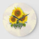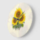 Ska solrosälskare älskar detta. En enkel bukett av solrosor sitter på en bakgrund av bleka blom. Hem- dekordesign för ideal för de som gillar den gladlynt looken av dessa inviterande blommor.