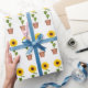 Solrosor mönstrar på en vitbakgrund som slår in papper. Ett slående in pappert designat med ett solrosmönster i stort format. Om du föredrar ett mindre mönsterformat eller väljer en annan bakgrundsfärg, kan du skräddarsy den i ett lätt långt.
