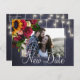 Gula solrosor i guld, röda burgunderrosor, strängar med gnistrande ljus och vit typsnittskrift på mörk marinblå elegant tavla med krita foto nytt datum försenat bröllops korthälsning. +++++++++ Lätt att anpassa med era namn och text! ++++++++++ Lämplig för blomster vinter, jul, sensommar eller höst / trädgård ute på landet rustika eller lantliga bröllop.