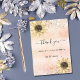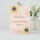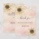 En roséguld och krämrosa falsk metallisk bakgrund dekorerad med falskt guld- och silverglitter och rustika solrosor. Personliggör och lägg till namn och datum på framsidan. Baksida: Tacksamhetsnot och namn