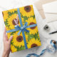 Solrosor mönstrar inpackning av papper. Ett slående in pappert designat med ett solrosmönster i stort format. Om du föredrar ett mindre format, kan du skräddarsy det och förminska solrosmönster i ett lätt långt.
