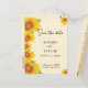Solros-tema bröllop spara datum-kort! Vår design har penselmålade gula orange solrosor för att skapa detta höst- eller countrystil arrangemang. Perfekt för ett höst- eller countrystybröllop eller för de som älskar solrosor. Låt din familj och vänner veta med detta spara datum-postkort.