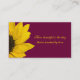 Texten om dessa solroskort vin och gult bröllop eller speciella evenemangskort är helt anpassade, eller bara lämna det som det är. Kortets storlek är 3,5 x 2 tum och allt som krävs är vissa platshållare. Detta kort för solrosplatser kommer att fungera bra vid ett antal särskilda tillfällen, t.ex. bröllop, årsdag party, födelsedagsfester osv. Vår butik har en mängd olika produkter för solrosprodukter från bröllop.