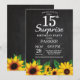 Solrosöverraskning 15:e födelsedagsinbjudan. Blommigt Flowers och Chalkboard Background. Land Vintage Retro. Barnflicka på födelsedagen. 12:e 13:e 15:e 16:e 18:e 20:e 30:e 40:e 60:e 70:e 90:e 100:e, i alla åldrar. Utskrivbar digital teknik. Om du vill göra ytterligare anpassningar klickar du på knappen "Anpassa" och användor verktyg som är utformat för att ändra mallen.