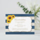 Sommarbröllopsboendekort med solrosor och navyblå ränder. Perfekt för rustika lanthusbröllop eller andra vintageinspirerade evenemang.