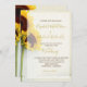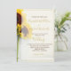 Inbjudan till solrosbröllop. En stark solros i gult är bakgrunden till inbjudan till personligt bröllp. Utformningen har en rustik känsla. Omvänt har solblommor med briden och triumferar namn som kan tas bort om du vill ha en ren bakgrund. All information ändras lätt för din anpassningsbars personliga bröllopsinbjudan.