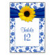 Gult solros med royal blått blommönster och simulerat bordsnummer av band bröllop. Ändra bordsnumret och lägg sedan till det i kundvagnen. Upprepa för varje bordsnummer du behöver.