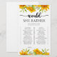 Solrosspel "skulle hon hellre vilja" möhippa. Utformningen har en bukett med vattenfärgade solblommor i vit ros och gult. Visa samlingslänken på den här sidan om du vill se alla matchande objekt i den här vackra designen.