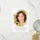 Tack till din familj och dina vänner för att de har deltagit i din kära begravning och deras vänliga anteckningar med det här fotokortet för personlig av elegant blommigt. Den här botaniska designmallen innehåller ett foto på framsidan med en ram av handmålade vattenfärgade solrosor och grönaktiga... Under gröntens skript står det "In Loving Memory" med ett namn och datum att anpassa. Kortets baksida har ditt tack, namnteckning och citat för att du ska anpassa dig och en guld kor accentuerad av en solros. Designad av Susan Coffey.