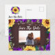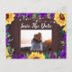 De här datumkorten har en rustik solros och lila ro med träbakgrund och ljus. Anpassa dem med fotot på framsidan och text på baksidan. Den här mallen fungerar bäst med bilder i liggande format. Matchande bröllop-kontorsmaterial finns också.