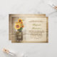vacker bakgrund av rustiskt trä och mason burk med solblommor, anpassningsbar inbjudningskort för möhippa.Bästa för land, rustik eller trädgårdsodlad möhippa party med solblommor under den sena sommaren eller hösten.