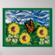 En solrosblomma fält som besöktes av en mullig fjäril.