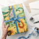 Solrossols Fält Gult Teal Decoupage Blommigt Art Presentpapper