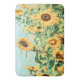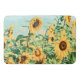 Söt stora solblommor i en fält, elegant gult teal art fotodekorativ badrumsmatta. Den vackra sommarnaturen blommigt land är rosterblommor. Upphovsrätt Marg Seregelyi Fotography.