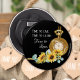 Ni och era gäster i bröllop kommer att åka till kärlek den här bröllop-magneten som också är en öppnare i flaska. En underbar fest föredrar att de kan sitta på ett kylskåp och de kommer att tänka dig och din speciella dag varje gång de användor det. Bold black ger en elegant bakgrund för söt solblommor och vackra tidpunkter i kombination med ord: "Time to Live". Dags att Laugh. Dags för Kärlek."