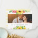 Solblommor kaskade från överkanten och grund på bröllop tackkortet. På baksidan av kortet finns vattenfärgen gult rand.