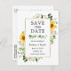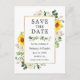 Modern Watercolor Eucalyptus Greenery White Blommigt Solblommor Guld Ram Spara datummeddelande efter Förlovning Postcard