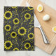 En vacker grå och svart med gul designad solrosmönster köksdiskhandduk