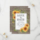 Rustik trä och solsicker bröllop spara datumet med en djärv datumdesign och script och serif teckensnitt. Designen har vackra stora blommor och gröna blad. Anpassa den med din egen text. Perfekt för en blomster- eller grönskande vår- eller sommarbröllop. Kontrollera samlingen för matchande brevpapperprodukter.
