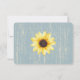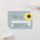 Tvättad dammig blå ladträ och solsickerrustykt land bröllopssvarskort med rustikt chic ladträ och ljusgul kontrasterande solsicker.