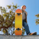 Solskateboard, med en jämn blandning av gult och orange färg i sol, är avsedd för skateboarders och skateboardingers fläkt som solar och solsken i kärlek. Så enkelt är det. Solnedgång är Steamy Raimon original art.